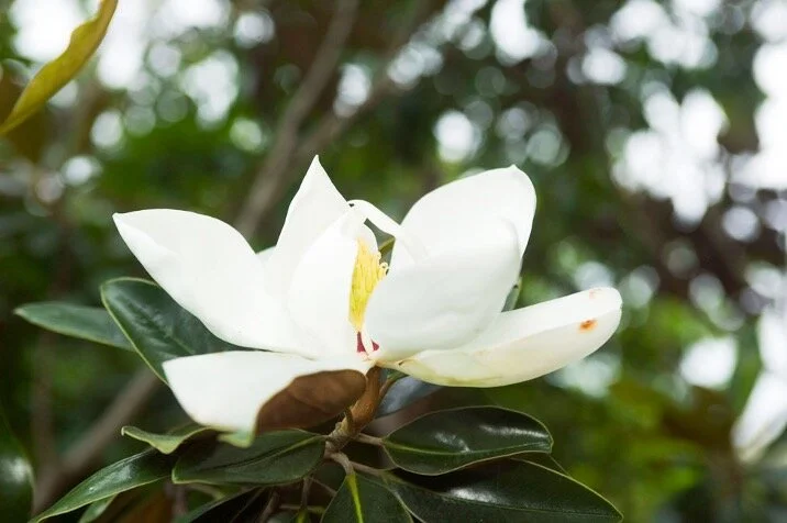 Magnolia. Both Magnolia ‘Teddy Bear’ and Magnolia ‘Little Gem’ are great options for the suburban backyard. They are compact, small sized trees and will grow to around 4m x 3m. They are a lovely shape and have a large saucer shaped flower. They are evergreen and make a wonderful feature tree.
