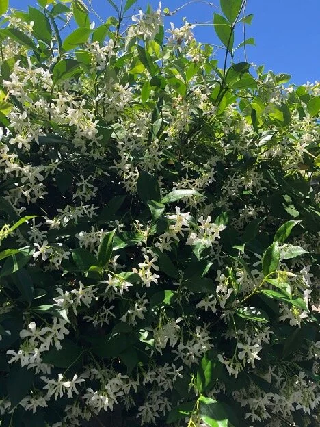 Star Jasmine. This classic climbing plant is everyone’s favourite. It’s highly fragrant and will flower over Spring and Summer with star shaped white flowers against glossy dark green leaves. If you’re looking for something to cover a trellis or arbour, this will do the job perfectly. Jasmine loves full sun or shade, so plant it where you can enjoy the scent.