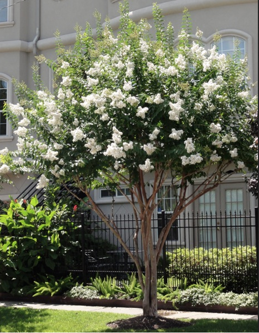 Crepe Myrtle. This is such a wonderful flowering tree! It’s deciduous, meaning it loses it’s leaves in winter, but don’t let that put you off! Enjoy the autumn leaf colour and the interesting bark on this tree. It thrives in hot weather, so does well in Australia and flowers heavily throughout summer. Crepe Myrtles come in a range of colours and sizes. The white ‘Natchez’ will grow to 6-8m tall, but if that’s too large, there is also the ‘Acoma’ which will grow to around 3-4m. It also has a gently weeping habit and will fit in with lots of garden styles. Image via Pinterest