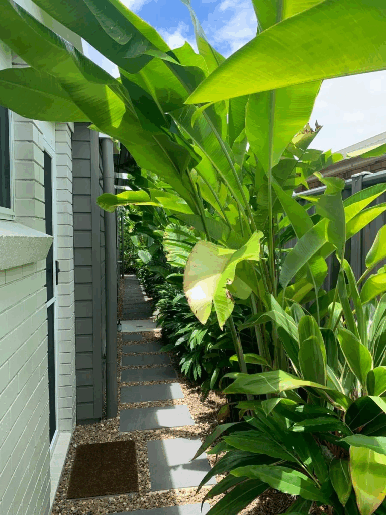 Although taller screening options might be considered the heroes, don’t forget about ground covers and smaller shrubs to complete your garden scene. Mix it up with different textures, colours, and heights for a more dynamic and visually interesting natural barrier. Native grasses, ferns, and ground covers can add texture and interest, fill in gaps, and create a cohesive look. Heliconias and cordylines will look even better when other lower growing leafy tropicals are added in to the mix.