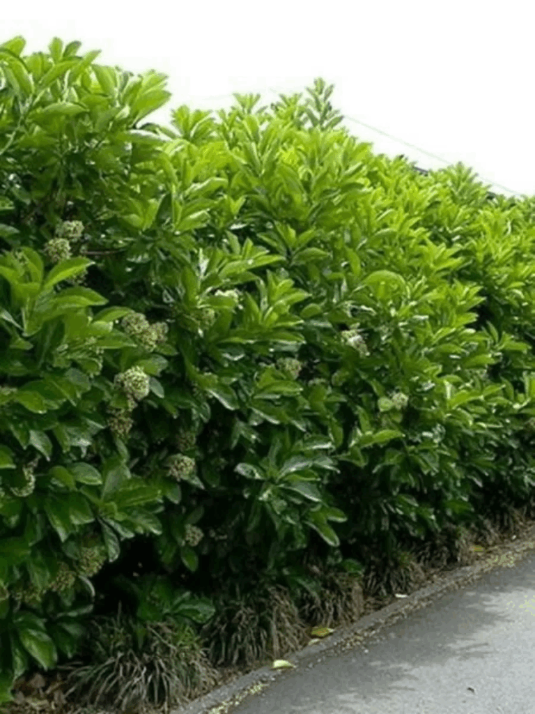 An excellent choice for privacy screens, Viburnum species like Viburnum odoratissimum and Viburnum tinus offer dense foliage and can grow in full sun to part shade. They’re quite hardy and can provide a lovely, thick green barrier. Viburnum odoratissimum ‘Dense Fence’ and ‘Quick Fence’ are great options for those looking for a hedge that will be fast growing.